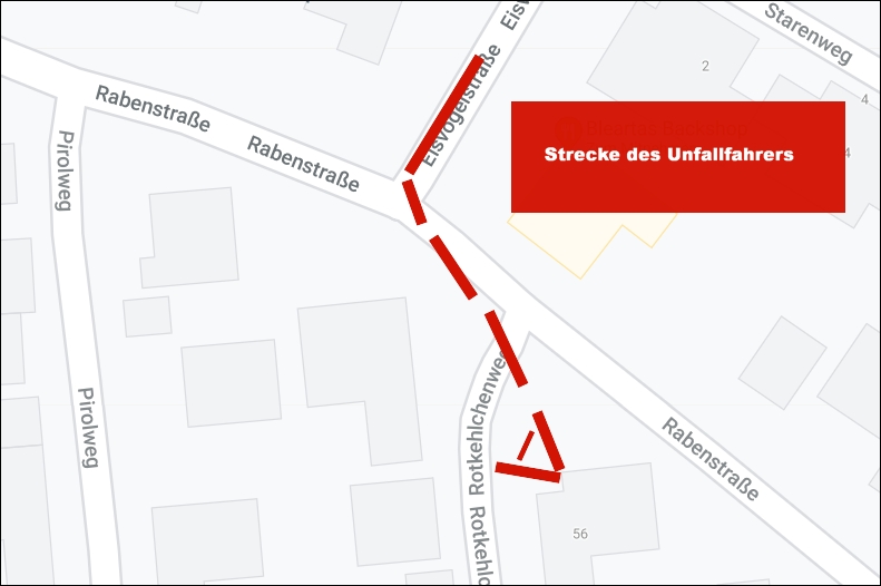 Augenzeugen berichteten gegenüber regio-aktuell24, dass ein BMW mit rumänischer Zulassung mit hoher Geschwindigkeit auf der relativ kurzen Eisvogelstraße entlang gefahren kam. Plötzlich sei der Motor aufgeheult. Kurz vor der Einmündung in die Rabenstraße war ein anderer Wagen unterwegs. Angaben des rumänischen Fahrers zufolge soll es einen Defekt am Fahrzeug gegeben haben, so dass er nicht langsamer habe fahren konnte. Um nicht auf den vor ihm nach rechts abbiegenden Wagen aufzufahren, lenkte er sein Auto nach links, rammte einen Straßenbaum, durchbrach an der Ecke Rabenstraße/Rotkehlchenweg einen Metallgartenzaun, durchquerte eine Rasenfläche und prallte zuerst an einer an einem Wohnhaus angebauten Garage und schleuderte gleich in ein Auto, welches vor der Garage geparkt hatte.