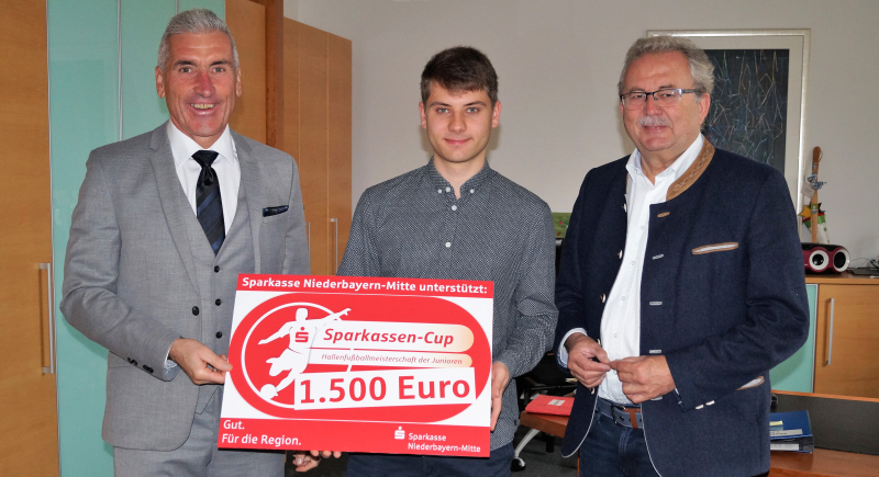 „Wir sind gerne wieder dabei“, betonte Walter Strohmaier, Vorstandsvorsitzender der Sparkasse Niederbayern-Mitte anlässlich der Spendenübergabe im Landratsamt zum Start der Hallenturniere. Walter Strohmaier brachte einen zweckgebundenen Scheck über 1.500 Euro an den Landkreis Straubing-Bogen in Person von Landrat Josef Laumer mit. Mit diesem Geld werden Urkunden, Medaillen und Pokale für die teilnehmenden Mannschaften besorgt. „Wir unterstützen gerne den Nachwuchssport. Das ist uns seit vielen Jahren ein Anliegen“, so Strohmeier weiter.