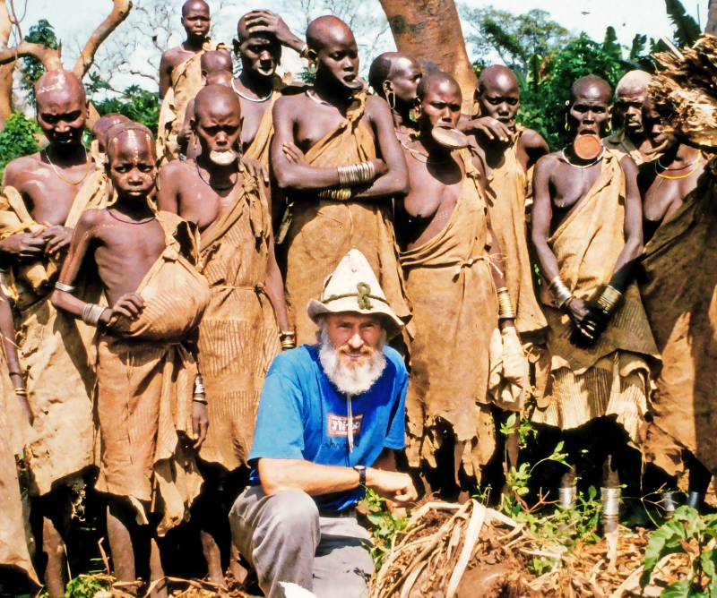 Auf dem Trip sollten noch etliche herausfordernde Situationen auf ihn warten. In Tansania fand der Globetrotter nicht nur wilde Stämme, sondern auch das höchste Bergmassiv des Kontinents, den Kilimandscharo. Nach der Besteigung des 5.895 Meter hohen Gipfels kreuzte Gangerl durch das angrenzende Kenia, in dem räuberische Banden die Straßen belagerten. So geschah es auch zweimal, dass der Abenteurer überfallen und beraubt wurde. Neu ausgerüstet ging es mit Rucksack und Zelt weiter durch das kulturreiche Kenia. Der Backpacker nahm sich vor, dort zu den vielen Volksminderheiten und Naturstämmen zu gelangen, um deren Lebensweise verstehen zu können. So auch im alten Kaiserreich Äthiopien, wo er zu Pferd tagelang tief in den Busch ritt, um den Stamm der Mursi zu besuchen. Beeindruckend mutet der Schmuck der Frauen an, die in ihrer Unterlippe bis zu 15 Zentimeter messende Teller tragen. Jedoch werden ihnen unter Schmerzen die unteren Schneidezähne gezogen und die Unterlippe eingeschnitten. Diese Tradition soll nach deren Befinden den Preis der Mitgift des zukünftigen Bräutigams erhöhen.