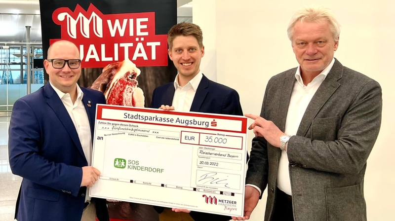 (ra) Vor drei Wochen rief der Bayerische Fleischerverband zusammen mit Schirmherrn Alois Rainer, MdB die Spendenaktion zur Evakuierung und Unterbringung von Kindern aus dem Kriegsgebiet ins Leben. Die Solidarität seiner Metzgerkollegen in ganz Bayern war enorm groß, sodass am Sonntagabend 35.000 Euro an Stephan Biermann vom SOS-Kinderdorf übergeben werden konnten.
