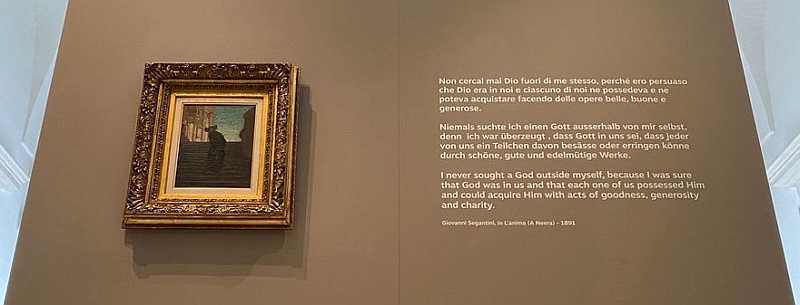 Gezeigt werden 22 Werke aus Privatsammlungen, aus dem Altogarda-Rovereto Rural Fund und von Mart sowie eine dokumentarische Sektion aus dem „F. Caproni“ und aus der städtischen Bibliothek und antiken Sammlung „Bruno Emmert“. Sie sind dem Gedenken an Giovanni Segantini, der von 1899 bis 1958 lebte, gewidmet. Darunter befindet sich auch ein Brief von Bice Bugatti Segantini und eine Notiz des Bildhauers Leonardo Bistolfi.