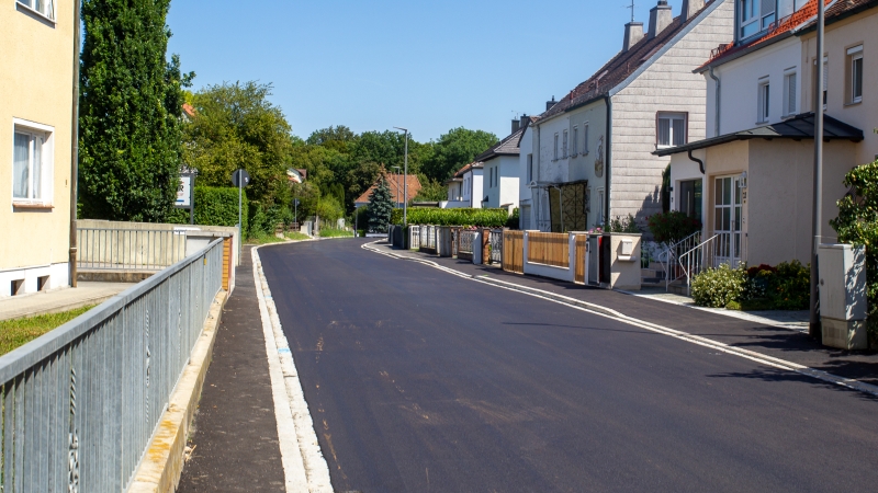 Die Maßnahme dauerte planmäßig gut vier Monaten. Der zugrundegelegte Kostenrahmen von knapp 700.000 Euro wurde eingehalten. Da der Straßenausbau auch eine Verbesserung der Barrierefreiheit sowie eine partielle Verbreiterung des Gehwegs beinhaltet, erhält die Stadt Straubing eine finanzielle Förderung der Regierung von Niederbayern im Rahmen des Städtebauförderprogramms Soziale Stadt.
