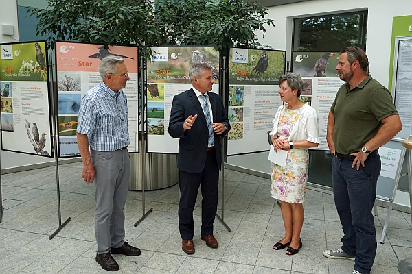 Auf diese Grundbedürfnisse auch der Tierwelt, vor allem aber auf die Gefährdung eines der am weitesten verbreiteten Singvögel Europas und Asiens, macht der LBV mit der kleinen Ausstellung im Landratsamt aufmerksam. Der Bestand an Staren ist in den letzten Jahrzehnten fast um die Hälfte zurückgegangen, erläuterte Dr. Bauer: Der Mensch lege im buchstäblichen ebenso wie im übertragenen Sinne Axt an die Lebensgrundlagen der Stare – aber auch der übrigen Vogelwelt und weiterer ungezählter Tierarten.