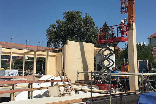 Mirjam Mandl-Rödler und Peter Turowski vom Technologie- und Förderzentrum (TFZ) informieren bei der Veranstaltung darüber, was in den nächsten Monaten auf der Baustelle alles passieren wird. Mandl-Rödler ist Diplom-Ingenieurin für Holzbau und Ausbau. Peter Turowski ist als Leiter der Zentralen Dienste auch für das NAWAREUM zuständig. „Das NAWAREUM ist in seiner Bauweise einzigartig, weil es Museumsqualität, höchste Brandschutzanforderungen und einen an die Bedürfnisse des Nutzers angepassten Passivhausstandard in Holzbauweise vereint“, so Turowski.