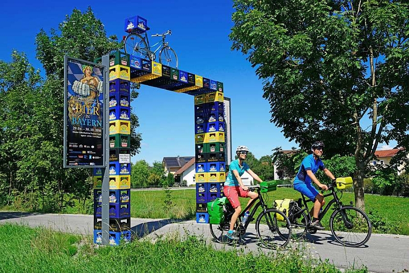 Radfahren und Bier – was auf den ersten Blick nicht unbedingt zusammengehört, kann doch eine erlebnisreiche Kombination sein. Und so wurde der Vilstalradweg zwischen Vilshofen an der Donau und Aldersbach im Zeichen des bayerischen Nationalgetränks zum Bier-Radl-Weg, der auf rund 13 entspannten Kilometern durch Wald und Wiesen führt. Unterwegs gibt es unterhaltsame Stationen, an denen man zum Beispiel lustige Bierfotos machen kann oder Rätsel rund um das Hopfengetränk löst. Start- und Zielpunkt sind jeweils durch ein großes Portal aus Bierkästen markiert.
