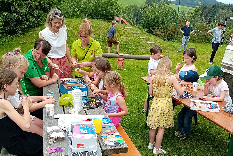 Während sich am Samstag noch zahlreiche Gäste vor den Regentropfen in den Stadlanbau oder unter die aufgestellten Zelte ins Trockene zurückzogen, bot der Sonntag vom Vormittag weg dann bestes Feierwetter im Biergarten. Für die Kleinen war das Kinderprogramm am Sonntagnachmittag natürlich der Höhepunkt des Festes, gestaltet von Sonja Mühlbauer mit ihren Helferinnen.