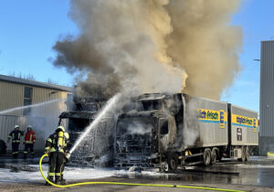 Brand in Logistik-Center: Zwei Lkw komplett ausgebrannt