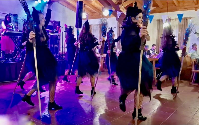 Als ersten Höhepunkt des Abends traten die „Burghexen“ aus Kollnburg auf. Sie spielten bei einem Ritual mit Flöten und führten anschließend mit funkelnden Reisigbesen Tänze auf, um böse Geister und den Winter auszutreiben. Die Ballbesucher belohnten sie mit reichlich Applaus.