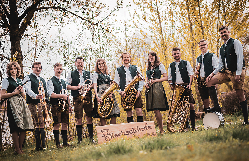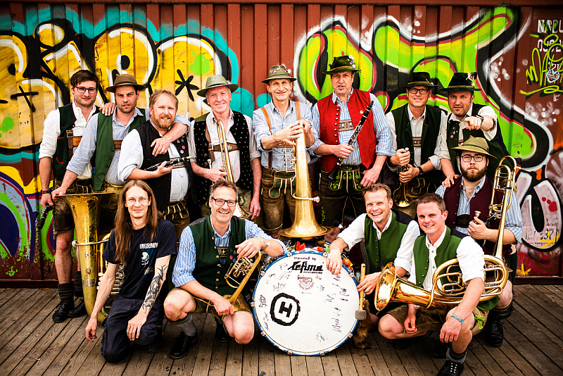 (ra) Ohne Verstärker, Notenständer und mitten unter den Zuhörern – so spielen die Blechschinda, „De Junga – Die Kapelle“ und…