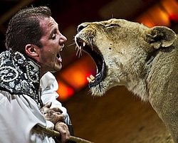 (ra) Angst kennt er nicht. Der hochdekorierte Tierlehrer ist ein Superheld im Zirkuszelt und präsentiert mit 26 weißen und goldfarbenen…