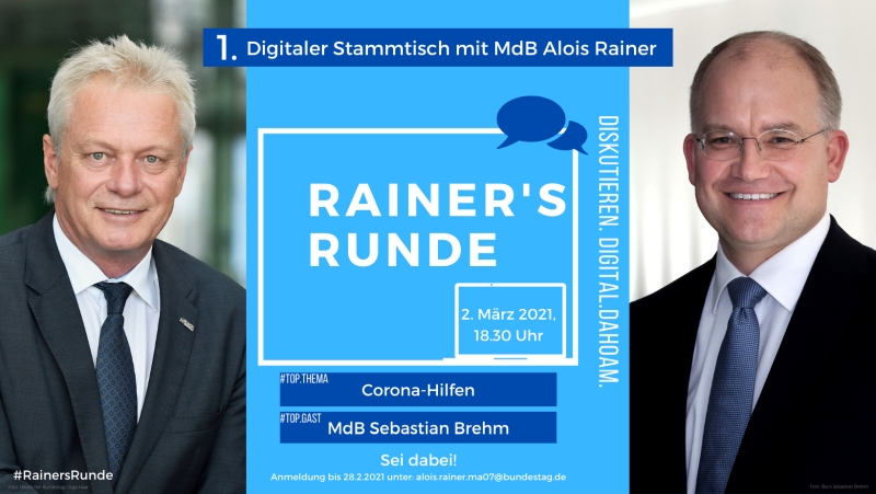 (ra) Stammtischkultur 2.0: Diskutieren. Digital. Dahoam. So lautet die Devise von Alois Rainer, MdB, der mit seinem neuen Online-Format „Rainer’s…