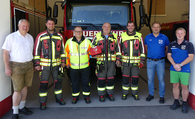 (ra) Im Beisein von Bürgermeister Anton Piermeier überreichte am Sonntag Dr. René Jones an die Verantwortlichen von Feuerwehr und Wintersportverein…