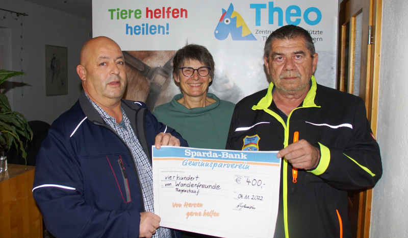 (ra) Einen Scheck über 400 Euro überreichten am Freitag Vorsitzender Otto Hofmeister und Kassier Heinz Stegerer von den Wanderfreunden Regenstauf…