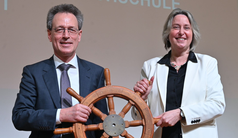 (ra) Ein großes, hölzernes Steuerrad überreichte der scheidende Präsident der Hochschule Landshut Prof. Dr. Fritz Pörnbacher seiner Nachfolgerin Prof. Dr.…