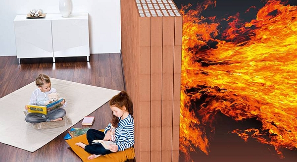 Auch beim Brandschutz setzen Bauherren mit dem Traditionsbaustoff Ziegel auf Sicherheit, denn Ziegel sind bei ihrer Herstellung bereits buchstäblich durchs Feuer gegangen. Der gebrannte Ton ist extrem widerstandsfähig und als nicht brennbar in der höchsten Baustoffklasse A1 eingestuft. Ziegelwände halten einer starken Brandlast stand und sichern Fluchtwege. Da hochwärmedämmende Ziegel ihre Dämmstofffüllung innen tragen, ist ein Brandüberschlag von einem Stockwerk zum anderen ausgeschlossen. Positiver Nebeneffekt: Die Versicherungsprämie fällt in der Regel für ein sicheres Ziegelgebäude günstiger aus als beispielsweise für Leichtbaukonstruktionen.