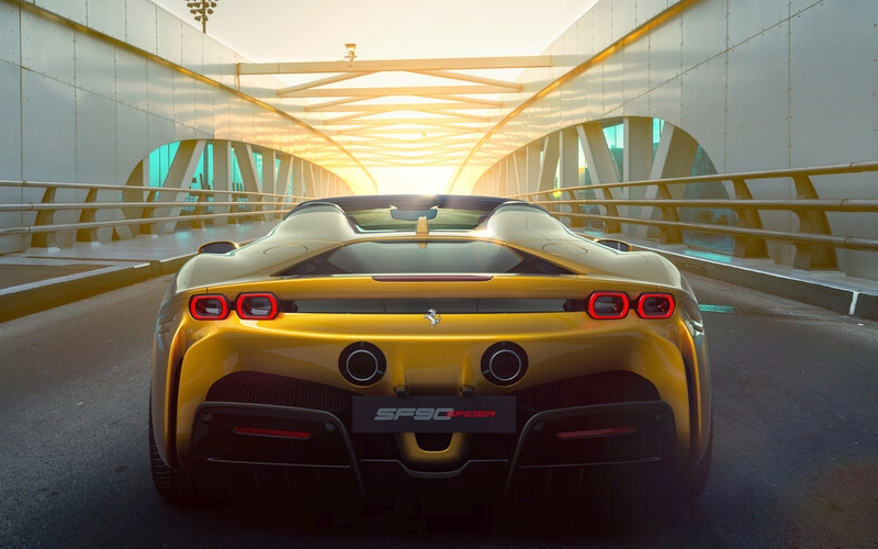 Auch der Spider verfügt natürlich verfügt über den 780 PS (574 kW) starken V8-Motor sowie zwei Elektromotoren an der Vorder- und einen an der Hinterachse. Sie bescheren dem Plug-in-Hybrid-Sportwagen eine Systemleistung von beeindruckenden 1000 PS (736 kW). Wie der Stradale verfügt auch der Spider über Allradantrieb. In 2,5 Sekunden erreicht der Ferrari Tempo 100, bis 200 km/h vergehen dann nur 4,5 weitere Sekunden.
