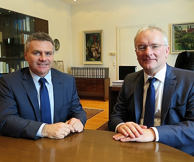 (ra) Es war nicht das erste Aufeinandertreffen des neuen Landshuter Oberbürgermeisters Alexander Putz mit Landrat Peter Dreier, aber dennoch nutzten beide die Zeit vor einer Sitzung des Berufsschulzweckverbandes für den offiziellen Antrittsbesuch des neuen Rathauschefs.