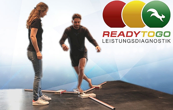 9 Tests – 1 klares Ergebnis: „Ready to go“ ist ein mobiler Test für Einzelpersonen oder Mannschaften, der überall einsetzbar ist. Die Leistungsdiagnostik umfasst neun Aktivitätstests, mit denen Stabilität, neuromuskuläre Kontrolle, Beweglichkeit, Kraft, Koordination und Schnelligkeit im Seitenvergleich und im Vergleich mit Kontrollgruppen überprüft werden und mit „sehr schwach“ bis „sehr gut“ bewertet werden.