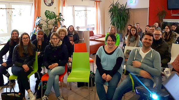 Im Anschluss an den Vortrag konnten sich die Schüler in Kleingruppen das Wohnheim zeigen lassen und knüpften in der TSM bereits die ersten Kontakte zu den Bewohnern des Hauses.