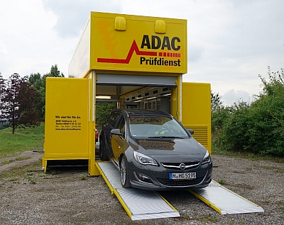 Der ADAC-Stoßdämpfer-Prüfstand gibt den Autofahrern Auskunft über den Zustand der so genannten Schwingungsdämpfer. Defekte Stoßdämpfer oder Federbeine sind weit häufiger Ursache für einen Unfall als vielfach angenommen. Auf unebener, welliger Fahrbahn verlieren die Reifen dann kurzzeitig den Bodenkontakt. Die Folge: Der Wagen bricht beim Bremsen oder Kurvenfahren aus und wird instabil. Die Stoßdämpfer müssen beim Check nicht extra ausgebaut werden. Das spart viel Zeit und Geld!