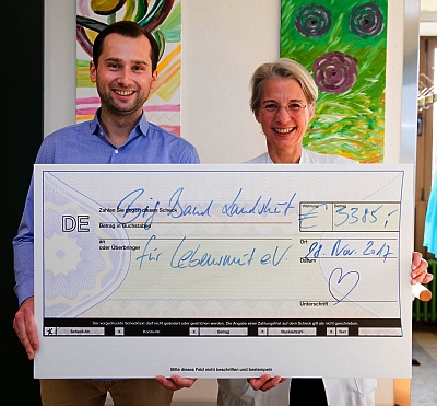 „Das ist ein ganz großes Geschenk für uns“, so Barbara Kempf, Chefärztin der Onkologie und Hämatologie am Klinikum Landshut sowie Initiatorin der Initiative Lebensmut in Landshut. Die Spende von mehr als 3000 Euro trägt auch im kommenden Jahr dazu bei, dass krebskranke Menschen in der Region psychoonkologische Unterstützung erhalten. Die BTB Bigband hat dieses Jahr zum zweiten Mal in Folge für Lebensmut gespielt. Das Konzert im Oktober war nicht nur ein musikalisches Highlight: Mit 3385 Euro wurden sogar 300 Euro mehr als 2016 gesammelt. „Es war wieder ein sehr schönes Konzert mit über 400 Zuhörern“, sagte Rathmayer bei der Scheckübergabe. „Umso mehr freut es uns, dass wir Lebensmut auch dieses Jahr wieder unterstützen können.“