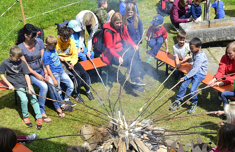 Ab 11 Uhr können gesammelte Kräuter in der Kräuterwerkstatt auch zu Kräutersalz oder duftenden Kräuterbuschen verarbeitet werden. Gemütlich Beisammensitzen kann man bei einem Stockbrot an der Lagerfeuerstelle des Raidlhauses. Oder man lauscht den Geschichten beim mobilen Erzähltheater. In der Alten Schmiede wird die Esse angeheizt und ein erfahrener Schmied zeigt den Kindern sein Handwerk. Wer möchte darf sogar selbst schmieden und sich einen Kettenanhänger anfertigen.