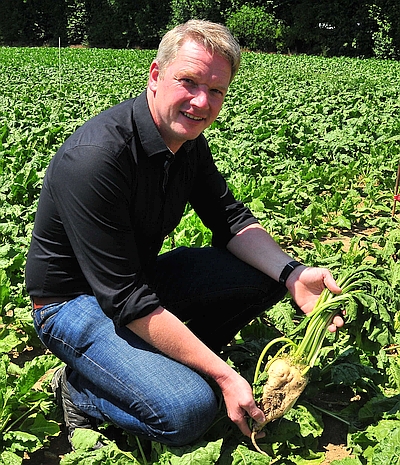 Franz Schreyer weist auf eine weitere Besonderheit der Zuckerrübe hin. „Ein Hektar ertragreiche Zuckerrüben-Anbaufläche setzt etwa doppelt so viel Sauerstoff frei wie ein Hektar Wald“, betont der Landwirt. „Damit produzieren Zuckerrüben auf der Fläche eines Fußballfeldes so viel Sauerstoff, wie 60 Menschen während eines ganzen Jahres benötigen.“