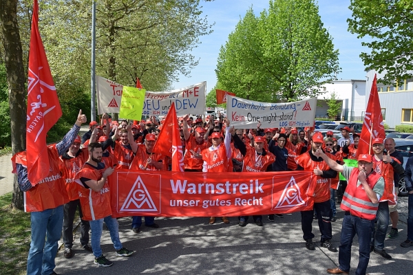 Schon vor Jahren hatten die Mitarbeiter Zugeständnisse beim Urlaubsanspruch gemacht, Lohnsteigerungen hinken weit hinter denen in der Metall-Elektrobranche hinterher. Auch die Spätschicht und die Nachtschicht sind zum Warnstreik aufgerufen. Die Beteiligung an der Vormittagskundgebung war gigantisch. Eine eindeutige Botschaft!