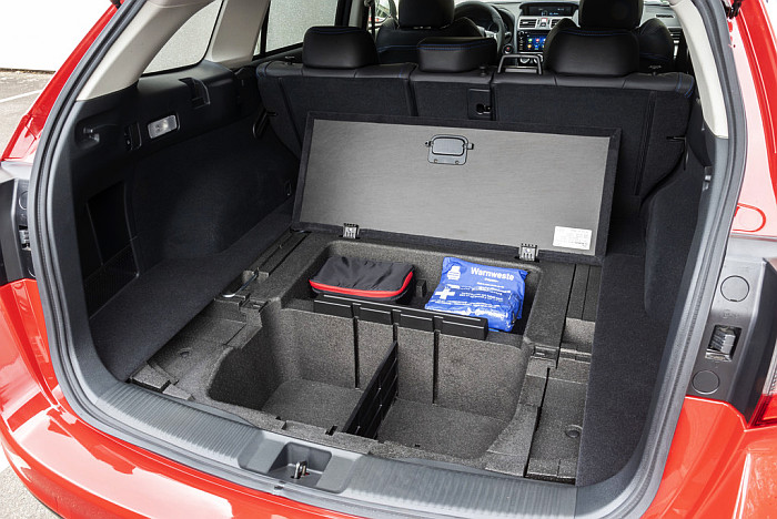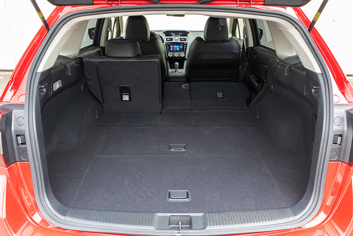 Die Rücksitzbank bietet erstaunlich viel Beinauflage bei ausreichendem Knieraum, die abfallende Dachlinie des sportlichen Kombis fordert allerdings bei der Höhe ihren Tribut. Der Levorg überzeugt mit einem 522 Liter großen Kofferraum von 1,05 Meter Länge und mit zwei Unterfächern. Eines davon belegen Pannen- und Erste-Hilfe-Set sowie das Warndreieck. Und Platz findet das Gepäckraumrollo bei Nicht-Gebrauch dort auch. Bei umgeklappten Lehnen lässt sich das Fassungsvermögen des Kombis auf 1446 Liter erweitern. Die Ladefläche wächst dann um rund 80 Zentimeter und steigt nur leicht nach vorne an.