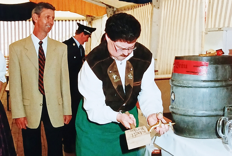 Und auch damals war im Vorfeld schon viel geboten. Hoch her ging es nicht nur beim Schirmherrenbitten mit Klaus Hofmann, einem Urenkel des Vereinsgründers Josef Hofmann. Auch die Bierprobe bei der Brauerei Klett in Konzell und das Patenbitten bei der Feuerwehr in Kasparzell stimmten alle Beteiligten gelungen auf das große Fest ein. Kasparzell war schon bei den Gründungsfesten 1934, 1951 und 1973 der Freiwilligen Feuerwehr Gossersdorf als Pate zur Seite gestanden. Ehrenvorstand und damaliger Festleiter Fritz Fuchs erinnert sich mit sichtlicher Begeisterung an das letzte Fest. Obwohl die Vorbereitungen „nicht ohne“ gewesen waren, sei es für ihn „der reine Wahnsinn“ geworden. Besonders habe ihn die Stimmung im ganzen Dorf begeistert, die auch jetzt wieder zu spüren ist.