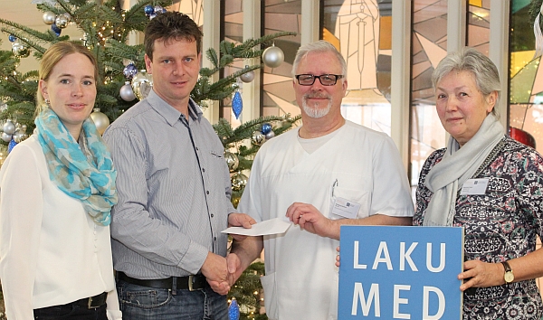 (ra) Einen Spendenscheck über 2.000 Euro übergaben am Dienstag Rudolf Thalhammer und Nicole Vergin an den Leitenden Oberarzt der Palliativstation am Krankenhaus Landshut-Achdorf, Wolfgang Sandtner und Mathilde Steger von der Brückenpflege.
