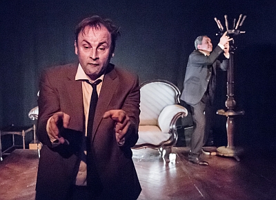 Eine Bühne, ein Cello, ein Sofa, ein Kleiderständer. Theatersport mit Matthias Kupfer und Eckhard Preuß nach Motiven von Mary Shelley’s „Frankenstein“. Fantasievoll changieren die Schauspieler zwischen Slapstick und Monty Python. Zirzensischer Zauber im virtuosen Spiel voller Improvisation. Ein Festival des schwarzen Humors – back on stage!