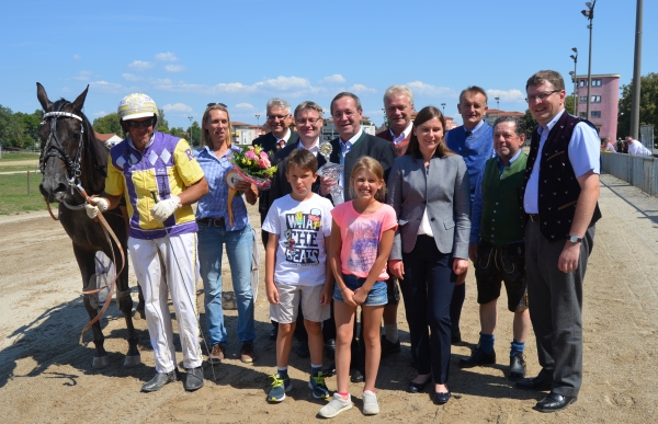 Im Preis des Bayerischen Landwirtschaftsministeriums durfte Staatssekretär Josef Zellmeier den Ehrenpreis an Nachwuchsfahrerin Lisa Hanikirsch übergeben. Durch die zweite Startreihe lag Josef Franzls Nachwuchsfahrerin mit Azimut zunächst innen eingesperrt im Hintertreffen, in der Schlussrunde war sie zumindest schon an die Außenspur gekommen. Ganz vorn schien alles für Cachamour (Marian Tux) zu laufen, der im Bummeltempo die Partie kontrollierte. An der letzten Ecke blies Troubadour GK (Herbert Strobl) jedoch zum Angriff und konnte sich prompt einen Vorteil verschaffen. Aber ganz außen kam jetzt Lisa Hanikirsch mit Azimut förmlich angeflogen und hatte auf der Linie einen hauchdünnen Vorteil. Magic Happens (Matthias Schambeck) komplettierte die Viererwette.
