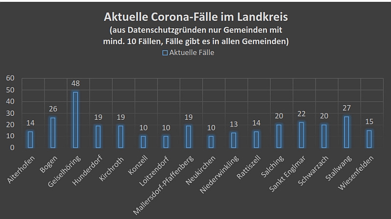 Das Gesundheitsamt geht zunächst einmal von weiter ansteigenden Fallzahlen aus. Aktuell sind 409 Menschen im Landkreis infiziert. Wichtig aber: In den Kreiskliniken schlagen sich die aktuellen Fallzahlen (noch) nicht nieder. In den Kliniken Bogen und Mallersdorf befanden sich am Dienstag ein Covid-19-Patient in Intensivbehandlung, drei weitere auf den Normalstationen.