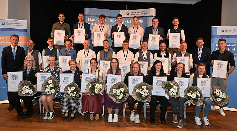 (ra) Für ihre herausragenden Leistungen in der Meisterprüfung ehrte die Handwerkskammer Niederbayern-Oberpfalz am Freitag im Rahmen eines Festabends im Hotel Asam in Straubing 25 junge Handwerksmeister*innen des Jahrgangs 2024/2025 mit einer Ehrenurkunde samt Medaille. Die jungen Handwerker haben in der Meisterprüfung in ihrem jeweiligen Beruf als Beste abgeschnitten.