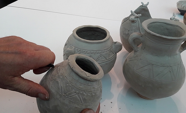 Im Gäubodenmuseum finden sich zahlreiche Gefäße aus Ton, die vielfältige Muster, Farben und Formen haben. Wir schauen sie uns an und lassen uns davon anregen. Anschließend formen wir ein kleines Gefäß und drücken Muster mit verschiedenen Werkzeugen und alltäglichen Gegenständen ein. Nach einer etwa vierwöchigen Pause, in der die Arbeiten langsam trocknen und im Ofen gebrannt werden, werden am 2. Termin die Vorratsgefäße farbig angemalt und man kann sie nach Hause mitnehmen. Wenn Zeit bleibt, werden wir auch noch anderes wie z.B. Stempel machen.