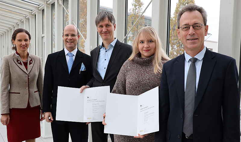 Das Zertifikat „Hochschullehre Bayern“ zeugt von der hervorragenden Kompetenz der beiden Absolventen. „Frau Doering und Herr Schröter zeigen durch die Qualifizierungsmaßnahme hohes Eigenengagement und intrinsische Motivation für die Weiterentwicklung ihrer pädagogischen Fähigkeiten. Dies ist für uns als Bildungsinstitution hoch erfreulich, da die stete Weiterentwicklung der pädagogischen Professionalität letztlich den Studierenden durch eine qualifizierte Bildungsumgebung zu Gute kommt“, äußerte sich Vizepräsidentin Prof. Dr. Silvia Dollinger begeistert im Anschluss an die Urkundenverleihung.