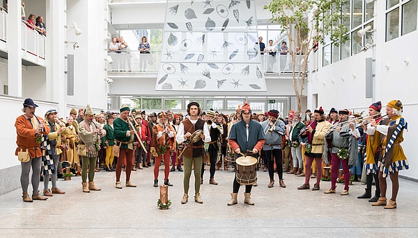 (ra) „Halloooo, Klinikum“: Mit dem Auftritt der Reisigen sowie der Zinkenisten und Posaunisten ist am Mittwoch erneut Hochzeitsfieber im Klinikum Landshut aufgekommen. Nach dem Auftritt der Fahnenschwinger war es bereits das zweite Mal, dass ein Stück Landshuter Hochzeit ins Klinikum gebracht wurde.