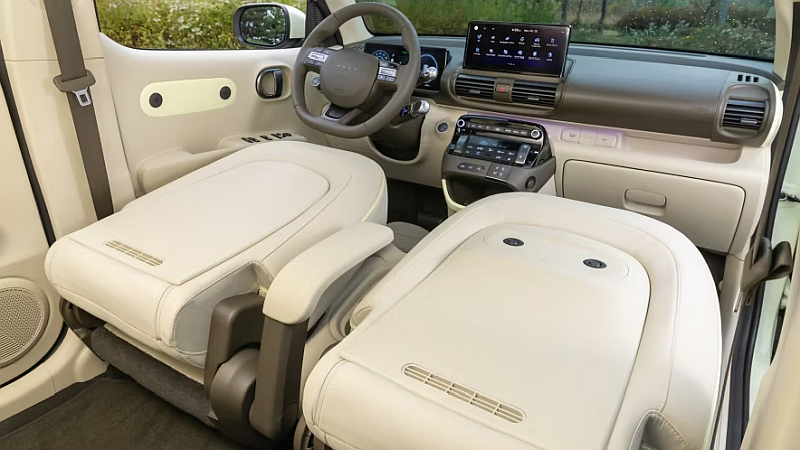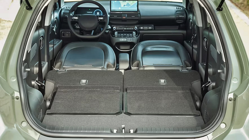 Der Innenraum des Hyundai INSTER ist geprägt von innovativer Flexibilität und moderner Technik und macht ihn einzigartig: Die optisch durchgängige vordere Sitzreihe bietet einen besonders leichten Zugang zum Fahrer- und Beifahrersitz, damit ist das Ein- und Aussteigen auf der anderen Seite in engen Parklücken komfortabel. Alle Sitze – auch der Fahrersitz – lassen sich vollständig umklappen. Die im Verhältnis 50:50 geteilte Rücksitzbank kann zudem um bis zu 16 Zentimeter in der Länge verschoben werden. So bietet das rund 3,80 Meter lange Elektrofahrzeug mit einem Radstand von 2,58 Metern ein großes Ladevolumen von bis zu 351 Litern (gemäß VDA). Bei umgelegten Sitzen wächst dieses bis zu 1059 Litern. Gleichzeitig zeichnet sich der INSTER durch eine besonders hohe Agilität im Stadtverkehr und aufgrund seiner Abmessungen durch komfortableres Ein- und Ausparken aus.