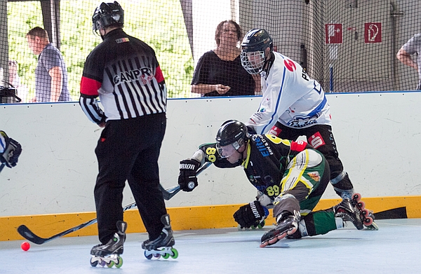Im zweiten Drittel wurde das Spiel dann aber klarer. Drei schnelle Tore von Moritz Eisenschink, Maximilian Kettl und Domink Nissen brachten eine 9:6-Führung. Szenenapplaus gab es für den zehnten Treffer: Dominik Kuhnle fälschte vor dem Tor stehen einen Schuss von Christoph Wittenzellner ab, danach folgte ein schönes Unterzahltor von Florian Meichel. Nach zwei Dritteln stand es 12:6.