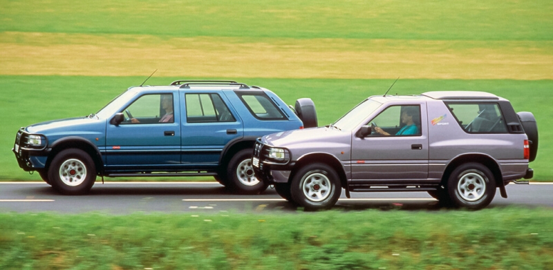 Entstanden war der Allradler in Zusammenarbeit mit dem damaligen Opel-Schwesterunternehmen und Geländewagen-Spezialisten Isuzu. Der Frontera war ab Ende 1991 stets in zwei Karosserievarianten lieferbar: Als zweitüriger Frontera Sport mit kurzem Radstand und Hardtop verfügte er über ein Zweiliter-Triebwerk mit 115 PS (85 kW). Den fünftürigen Frontera mit langem Radstand gab es wahlweise mit einem 2,4-Liter-Benziner mit 125 PS (92 kW) oder dem 2,3-Liter-Turbodiesel mit 100 PS (74 kW). Die Kraft wurde bei allen Modellen über ein FünfGang-Schaltgetriebe und ein zweistufiges Verteilergetriebe mit Geländeuntersetzung an die Hinterachse übertragen. Die Vorderachse musste noch über einen kurzen Hebel auf der Mittelkonsole zugeschaltet werden.