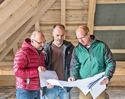 Müssen mehrere Bauteile am und im Haus modernisiert werden – etwa Dach, Kellerdecke und Fenster – können die Arbeiten in der Regel nicht in einem Zug angegangen werden. Aber auch eine schrittweise Sanierung führt zum Ziel, die Maßnahmen müssen nur zueinander passen. Für die Erstellung eines Sanierungsfahrplans sollte ein Energieberater, etwa aus der Energieeffizienz-Experten-Liste der Deutschen Energie-Agentur (dena), hinzugezogen werden. Dann können auch Fördermittel bei der KfW Bankengruppe für die Sanierung und eine Vor-Ort-Beratung beantragt werden.