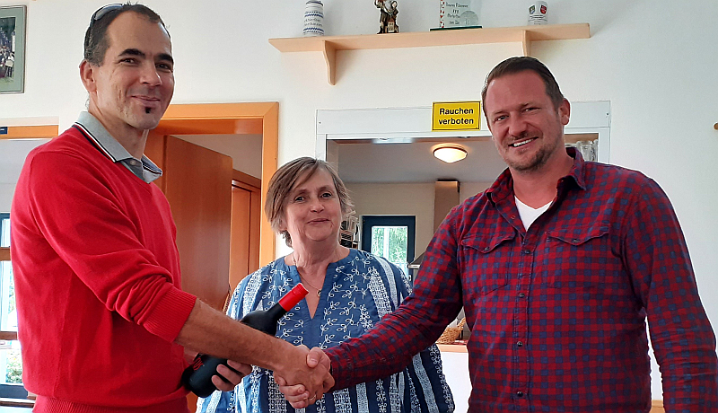 (rp) Beim „Roten Herbst“ der SPD Geiselhöring, der dieses Jahr am Sonntag in Oberharthausen stattfand, wurde auch ein langjähriges Mitglied geehrt. Johannes Faden aus Hirschling konnte bereits 2020 auf eine 20-jährige Mitgliedschaft in der SPD zurückblicken. Anfangs konnte er wegen den Corona-Auflagen, später wegen Terminkollisionen nicht entsprechend geehrt werden. Doch am Sonntag holten dies die beiden Ortsvorsitzenden Barbara Kasberger und Michael Meister nach. Zum Jubiläum gab es neben einer Urkunden und der silbernen Anstecknadel auch eine Flasche Rotwein.