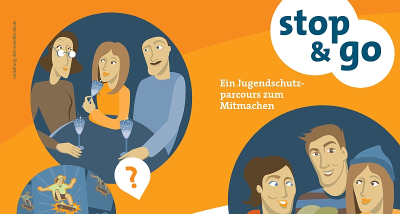 Jugendschutz besteht aus mehr als Gesetzen und Vorschriften. Der Jugendschutzparcours „stop & go“ ermöglicht Kindern und Jugendlichen ab zwölf Jahren eine aktive Auseinandersetzung mit den Bereichen Medien, Konsum und Sucht. Themen, mit denen Jugendliche in ihrem Alltag ständig konfrontiert werden. Strukturiert ist der Parcours mit den passenden Roll-Ups und vielen Materialien in themenspezifische Diskussionsstationen, die zum Mitmachen und Reflektieren anregen. Im Rahmen der Stationsarbeit erhalten sie einerseits die Möglichkeit, sich selbst einzuschätzen, andererseits werden sie für mögliche Gefahren sensibilisiert. Ziel ist es, die Eigenverantwortlichkeit jedes Einzelnen individuell zu fördern. Der praxisnahe und an die aktuellen Lebenswelten der Jugendlichen angepasste Jugendschutzparcours schafft Orientierung und beeinflusst das Risikoverhalten junger Menschen positiv.