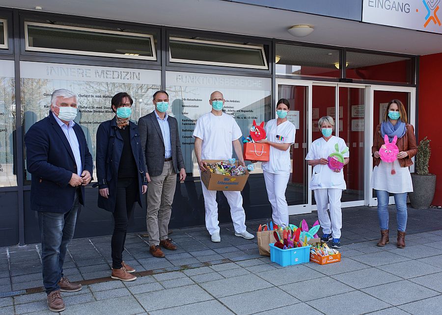 „Das Einsammeln der einzelnen Geschenke war gar nicht so einfach,“ berichtete die Kindergartenleiterin. Da persönlicher Kontakt vermieden werden musste, läuteten die Familien vorher bei den Erzieherinnen und stellten ihr Präsent mit entsprechendem Abstand ab. An die Klinik wurden die gesammelten Osterüberraschungen mit dem Wunsch überreicht, „dass Sie hier im Dienst vor allem möglichst ruhige Ostern haben mögen“, richtete Claudia Riedl aus.