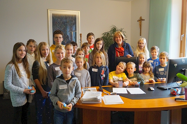 Im Landratsbüro wurden die Mädchen und Jungen in diesem Jahr von der Stellvertretenden Landrätin Barbara Unger empfangen, da Landrat Josef Laumer dringende Termine in München auf dem Programm stehen hatte. Die Stellvertretende Landrätin hatte kleine Geschenke mitgebracht und plauderte mit dem Nachwuchs munter drauf los. Dabei erfuhr sie einiges Überraschendes: So zum Beispiel, dass bei einem Großteil der Kinder Mathematik eines der Lieblingsfächer ist. „Erstaunlich“, fand das nicht nur die Stellvertretende Landrätin. Die anfängliche Schüchternheit legten die Buben und Mädchen jedenfalls schnell ab. Erst recht, als es darum ging, im Stuhl des Landrats an dessen Schreibtisch zu sitzen. Und wer weiß – vielleicht war ja an diesem Mittwoch auch bereits der ein oder andere kommende Mitarbeiter der Landratsamtsverwaltung in der Leutnerstraße zu Gast.