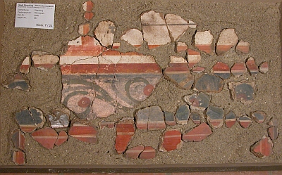 So war es schon in römischer Zeit üblich Innenräume von Wohnungen und öffentlichen Gebäuden farbenfroh zu gestalten. Im Museum gibt es ein Beispiel dafür zu entdecken. Davon ausgehend lernen die Teilnehmer, wie mit mineralischen Pigmenten in der vorindustriellen Zeit Öl- und Temperafarben hergestellt wurden.