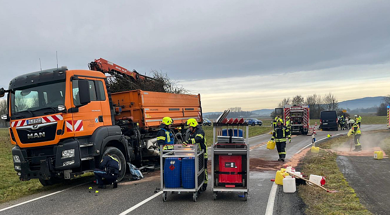 Nach dem Zusammenstoß der beiden Fahrzeuge mussten Einsatzkräfte der Feuerwehr der Fahrer des Kleintransporters aus seinem Fahrzeug befreien. Beim Lastwagen wurde der Dieseltank beschädigt, sodass der Kraftstoff auf die Fahrbahn ins Bankett floss. Einsatzkräfte der Feuerwehr setzten Bindemittel ein, um die Fahrbahn zu reinigen.