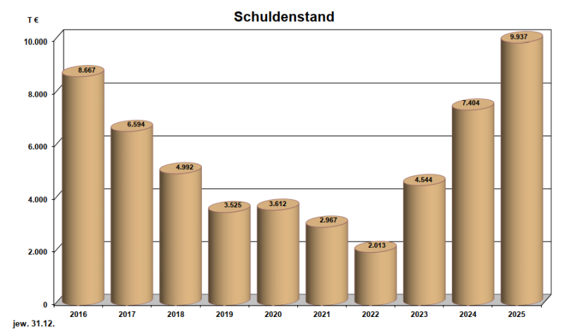 Der Landrat bezeichnete den Haushalt, „der leider nicht in die Zukunft gerichtet ist“. Die Zuführungsrate erfülle gerade noch die haushaltsrechtlichen Mindestanforderungen. Investitionen aus Mitteln der „freien Spitze“ seien nicht mehr möglich. Die Investitionen würden komplett zu Lasten des Landkreises über Rücklagenentnahmen (insgesamt 1,4 Millionen) und Kreditaufnahmen (insgesamt 3,5 Millionen Euro) finanziert. Die Verschuldung des Landkreises steige auf rund 9,9 Millionen Euro an.