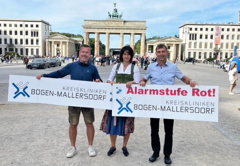Da die Patientenversorgung vor Ort sichergestellt sein muss, sind einige leitende Verantwortliche der Kreiskliniken Bogen-Mallersdorf nach Berlin gefahren – nach dem Motto „Chefs demonstrieren für ihre Mitarbeiter“. Verwaltungsleiter Bernhard Fürst (Mallersdorf) und die Pflegedienstleitungen Silvia Huber-Stickl (Bogen) und Andreas Schneider (Mallersdorf) haben sich ab 11 Uhr vor den Brandenburger Tor mit Protestschildern an der Demonstration beteiligt.